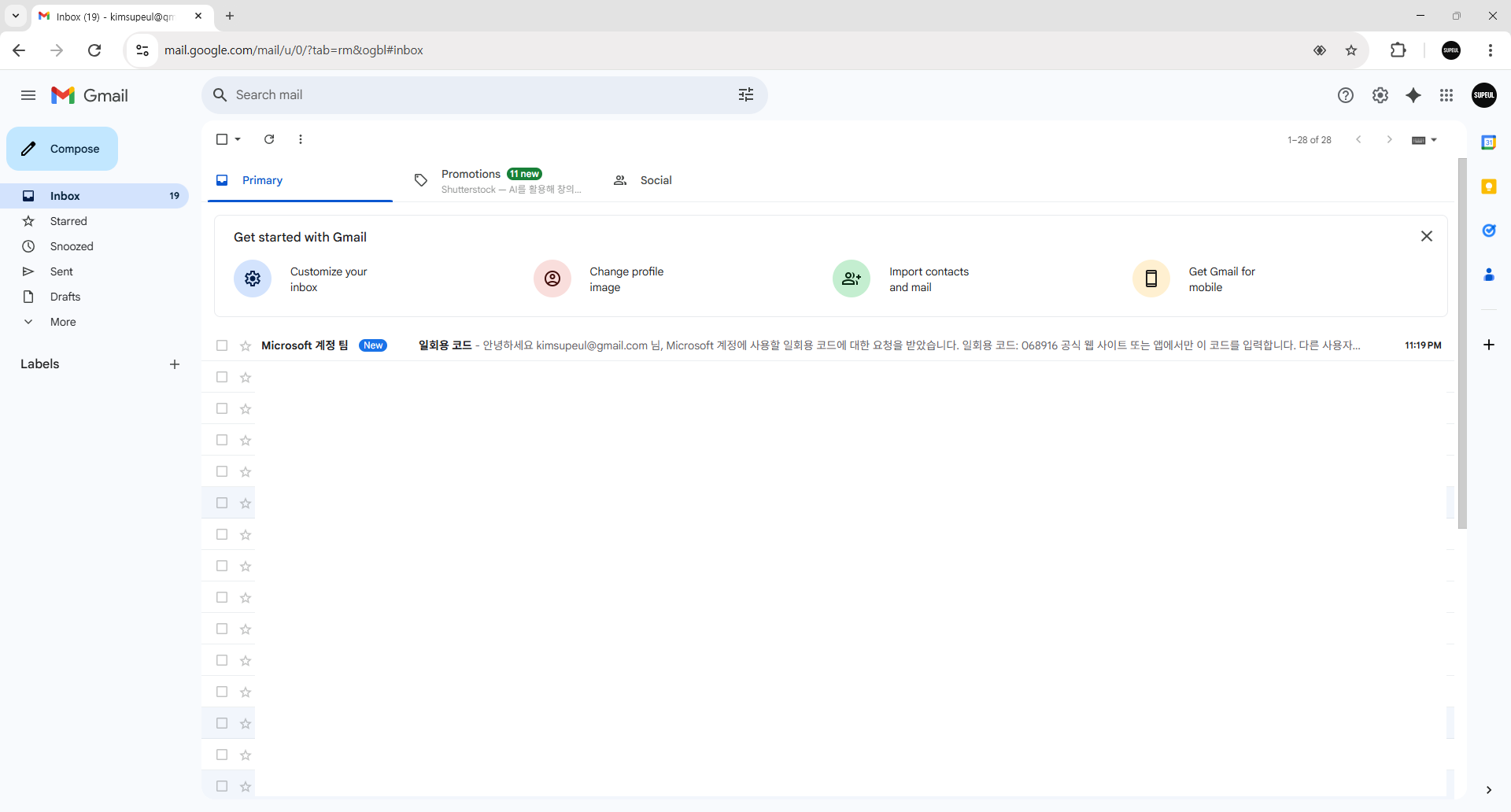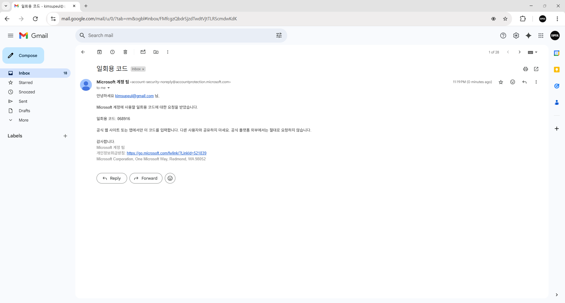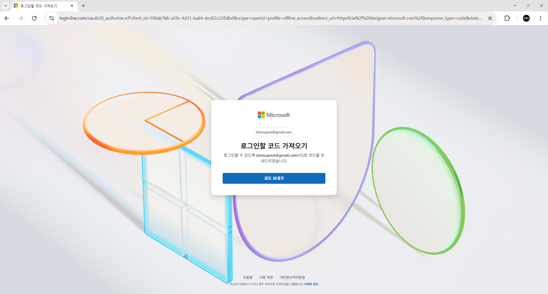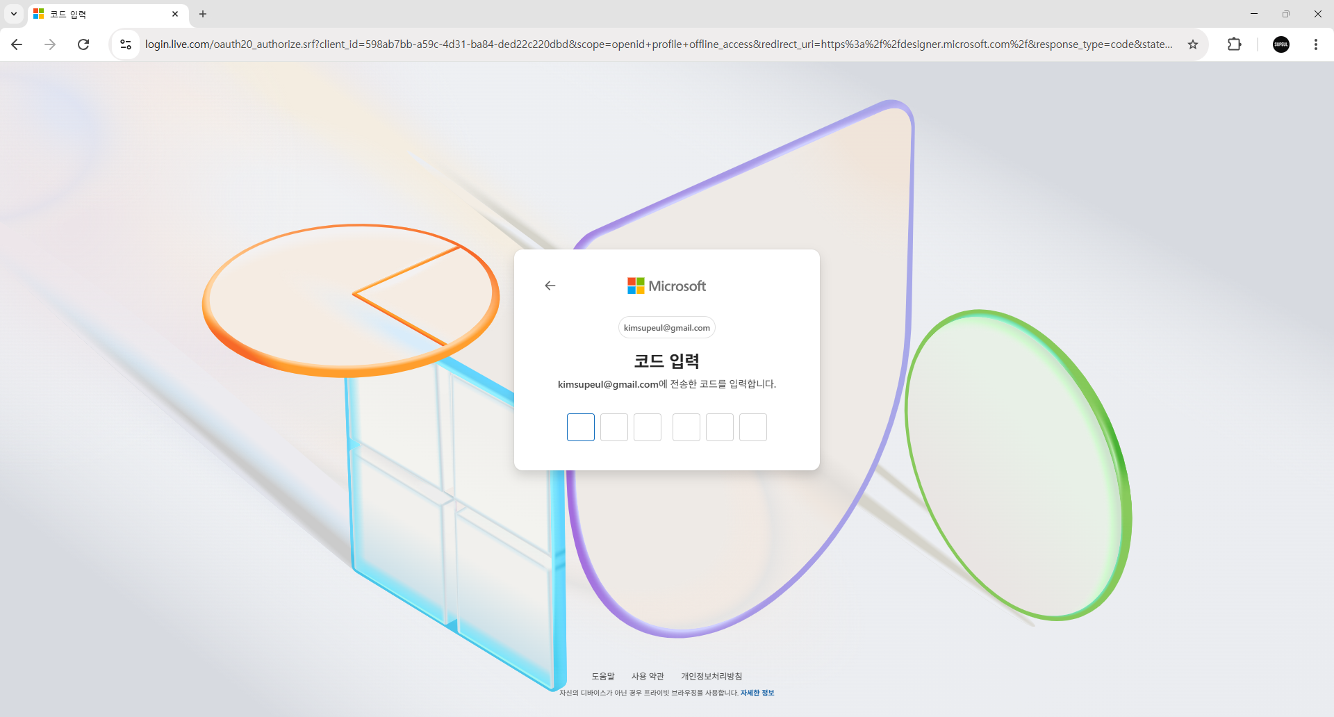 5. 코드입력 란이 나오면 내 이메일로 이동합니다.